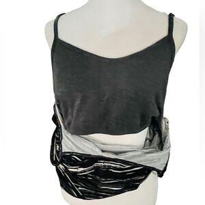 SOYBU tank top with attached crop bra underneath, criss cross straps size L