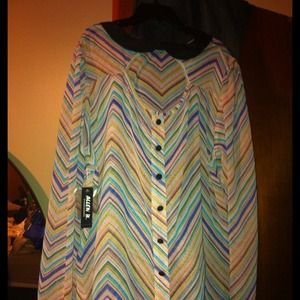 REDUCED!!!!XL Chevron Printed SHIRT WITH BLACK DETAIL BUTTONS DOWN THE BACK! CAN WORN WITH JEANS OR SLACKS!