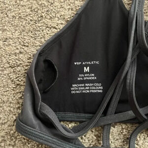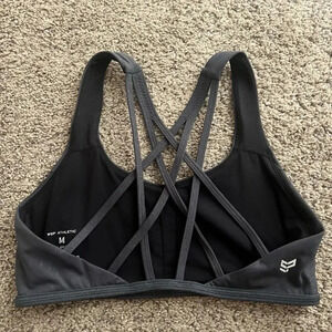 SP Athletics Strappy Gray Minimal Light Compression Sport Bra Size Medium Cross