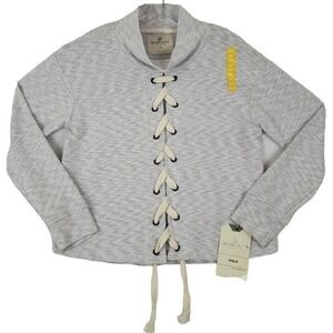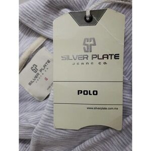 SP SILVER PLATE jeans Co. ~Size L~ White/Gray Striped Top Shirt Turtleneck NEW.