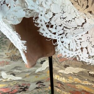 Space 46 lay spaghetti strap top white lace overlay tan liner, sheer adjustable strap V-neck cute summer dress up top SZ S measurements in pics pics check all pics comment with any questions