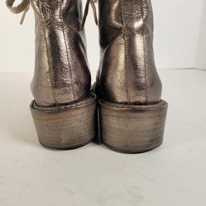 SPACE Styled in France Metallic Taupe Leather Combat Boot Women Sz 6.5