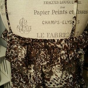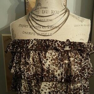 Brown and white pattern with jeweled and beaded straps which are adjustable and removable. Last picture shows halter top option. Necklace is not for sale..for visual effects only.