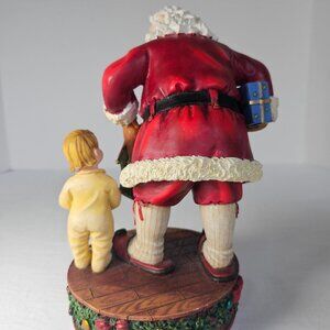 SPAN Vintage Resin musical Santa Claus Figurine With Stocking And Small Boy