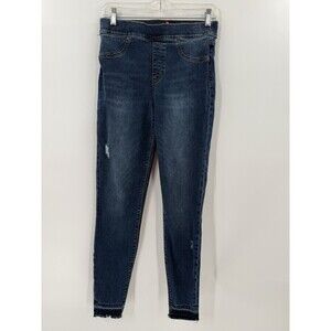 SPANX ANKLE SKINNY Shade Blue Pull-On Jeans-MEDIUM - Easy Wear Some Distressing