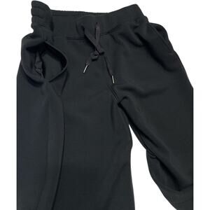 Super Soft SPANX Air Essentials Black Women's Joggers size XL. Classic jogger sweatpant style with with elastic waist with drawstring and elastic at bottom on the legs. Front pockets. Great condition but does have marks where they were hung up with a tight hanger, has caused it to make impression into the fabric on the front and back top of pants. Please see pics. Minor. Very buttery soft comfortable joggers. Good weight, not light. Really wanted to keep these for myself!