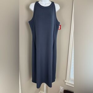 SPANX Air Essentials Tank Midi Dress Dark Storm Grey Size XL Side Stripe New