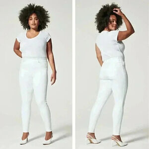 SPANX Ankle Skinny Jeans White High Rise Stretch Denim Shapewear Neutral