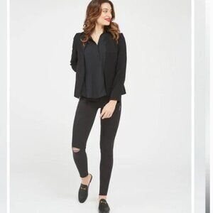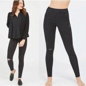 SPANX Ankle Skinny Pull On Jeans Vintage Distressed Black size Large