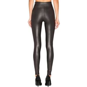 SPANX Black Faux Leather Leggings Shimmer w/ Crack Effect Women Small Shaping