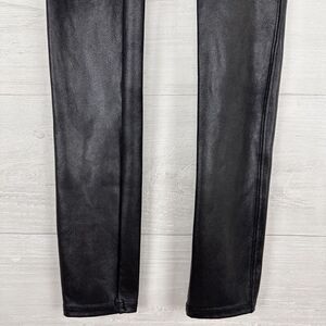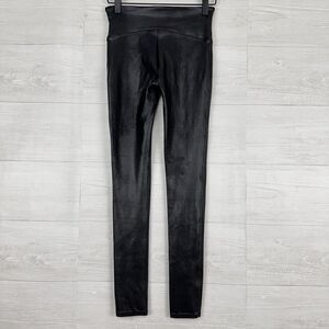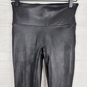 SPANX Black Faux Leather Leggings Shimmer Women Small w/ Crack Effect Shaping