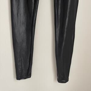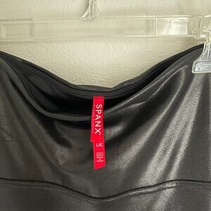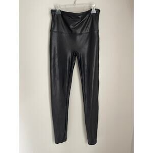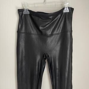 SPANX | Signature black faux leather leggings meant to be ankle length. High waist with tummy control.
