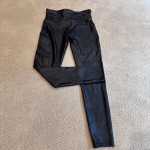 SPANX Black Faux Leather Leggings Size XL #2437 Sporty Athleisure Trendy Slimming Capsule Wardrobe