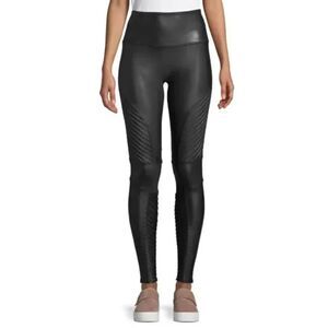 SPANX Black Faux Leather Moto Pull On Skinny Stretch Ankle Leggings Size XL