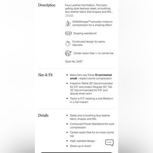 SPANX Black High-Rise Faux Leather Leggings, Size M