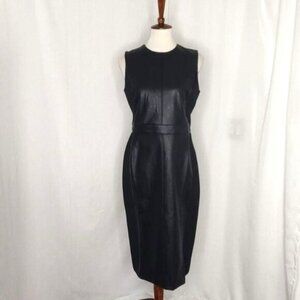 SPANX Black Leather Dress M Like Combo Fitted Delux Sheath Sleeveless 2039