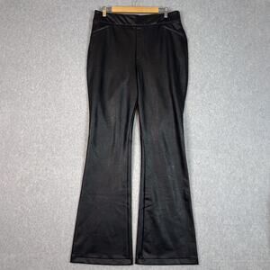 SPANX Black Leather Like Flare High Waisted Pull On Pants Size 1X Tall