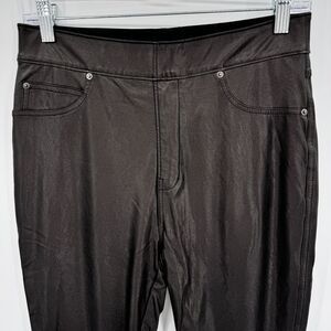 SPANX Black Leather-Like Pull On Ankle Leggings Size M