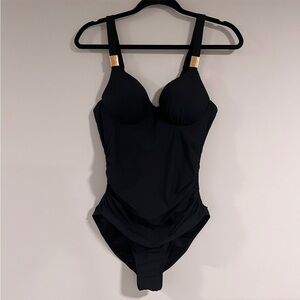 SPANX Black Let's Go Slimming Riveting Ruched One Piece Swimsuit Size 10 B/C