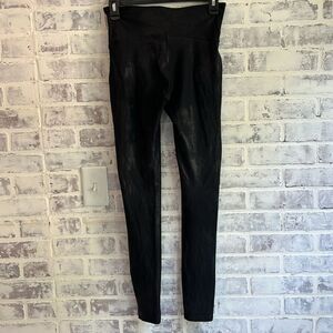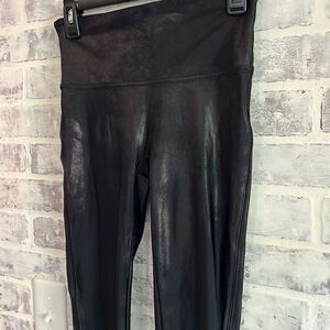 SPANX Black Shimmer Metallic Faux Leather Leggings Women’s Medium