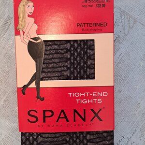 SPANX by Sara Blakely Black Tight End Tights Patterned Size C. Soft comfortable waistband. Cotton gusset. Body shaping control. Patterns designed for fashionable look. Fits 4"11" to 6.0", 150 - 180 lbs.