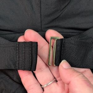 Elegant black one-piece swimsuit. Features adjustable straps. Perfect for a sleek look.