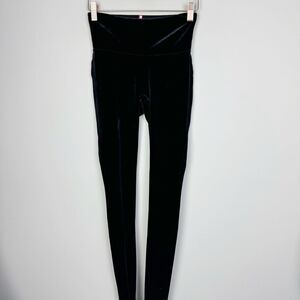 Amazing and trendy black velvet leggings by Spanx. These are super popular for a reason! Slimming and comfortable! Pair them with just about anything! Dress them up or down. No fabric tag - cut it out. Womens size small.