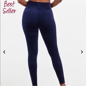 Amazing and trendy blue velvet leggings by Spanx. These are super popular for a reason! Slimming and comfortable! Pair them with just about anything! Dress them up or down. Great condition. Womens size small.