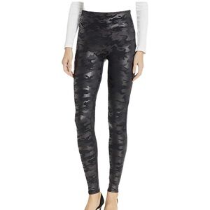 The liquid look of SPANX's edgy faux-leather fashion leggings are a favorite for casual days and nights out. Hugging your curves with a shaping waistband with hidden power mesh, they offer a more structured fit and pant-like feel than typical leggings. Want to show off your silhouette? Pair the cool faux-leather leggings with a fitted top, leather moto jacket and sleek knee-high boots. Going for a more casual day? The fitted design looks awesome with a draped tunic, comfy cardigan and chic white sneakers.