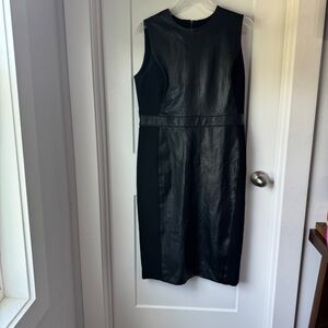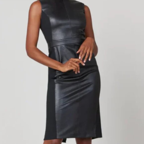 SPANX Combo Leather Like Luxe Sheath Black Vegan Stretch Dress