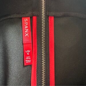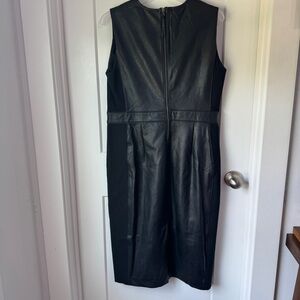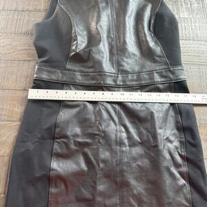 SPANX Combo Leather Like Luxe Sheath Black Vegan Stretch Dress Large LIKE NEW