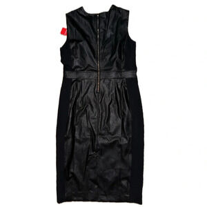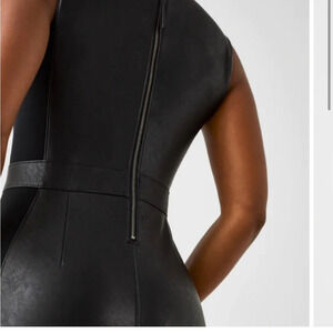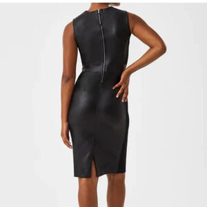 SPANX DRESS Leather Like Combo Sheath Dress Luxe Black Size Medium NWT