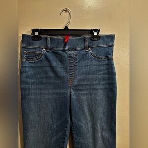 SPANX Dark Blue Flare Women's Jeans pull on size large minimal denim