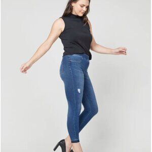 Designed with comfortable stretch denim, high-rise coverage and hidden tummy shaping, this Distressed Skinny Jean is a “jean come true.” It’s the perfect match for your tees, sweaters, tanks and everything in between.