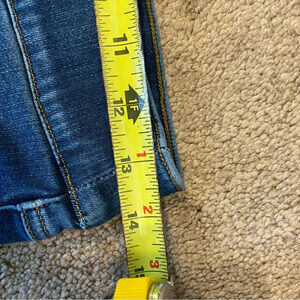 SPANX Distressed Crop Capri Skinny Denim Legging Med Dark Wash Raw Hem Size MP
