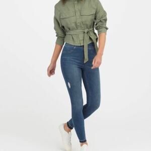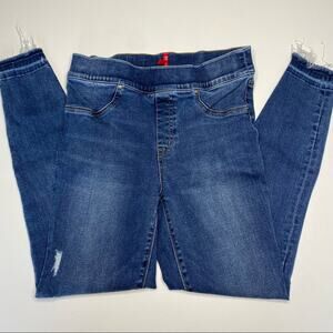 SPANX | Distressed High Rise Medium Wash Skinny Raw Hem Jeans