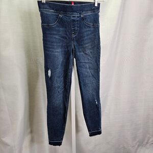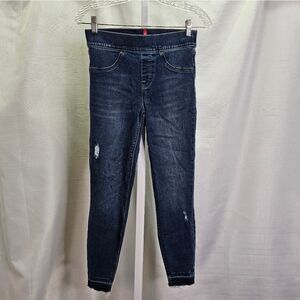 SPANX Distressed Pull-On Skinny Jeans | Size 4 Petite | High-Rise Shaping Denim