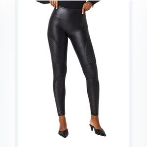SPANX FAUX LEATHER VERY BLACK MOTO LEGGINGS size XL