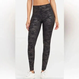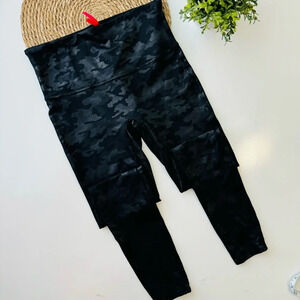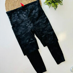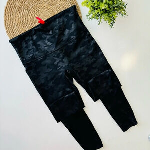 SPANX Faux Leather Black Camo Leggings Slimming Size XL
