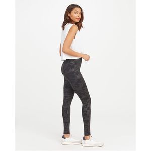 SPANX Faux Leather Camo Leggings Matte Black Size Large, MSRP $98