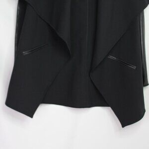 SPANX Faux Leather Convertible Jacket Black Coat Snap Drape Front Size XS