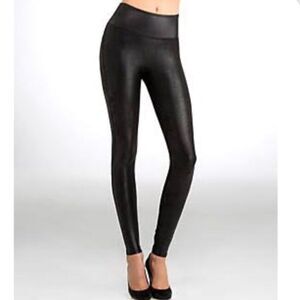 The ever so popular faux leather leggings by Spanx. They pair so well with everything! Great condition!! Size Small.