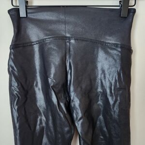 SPANX | Faux Leather High Waisted Leggings in Black - Size M Petite