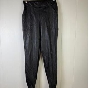 SPANX- Faux Leather‎ Jogger Pants Black High Rise Pull-on Stretch S