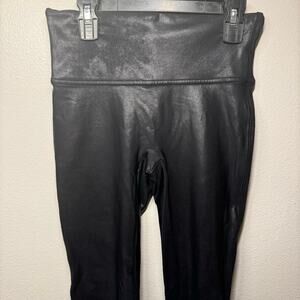 SPANX Faux Leather Leggings Shaping Waistband Black Leggings Women Size Small