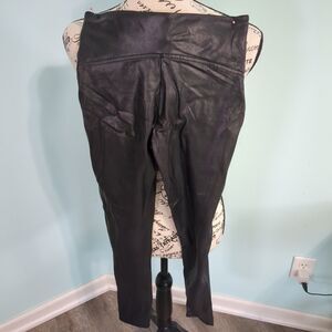 SPANX Faux Leather Leggings small Black High Rise Full Length Elastic Waist
