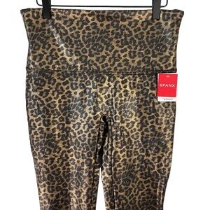 SPANX Faux Leather Leopard Shine Leggings 1X Shapewear Animal Print Mobwife NWT