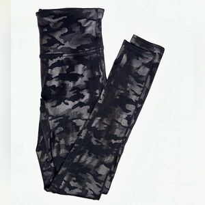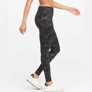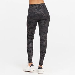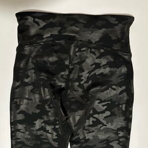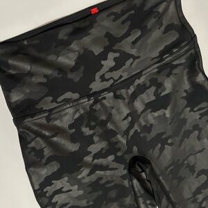 SPANX Faux Leather Matte Black Camo High Waisted Leggings Tummy + Booty Shaping