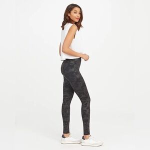 SPANX Faux Leather Matte Black Camo High Waisted Leggings Tummy + Booty Shaping