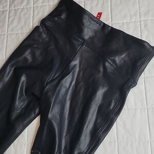 SPANX Faux Leather Metallic Black Leggings XS/TP (D0008)